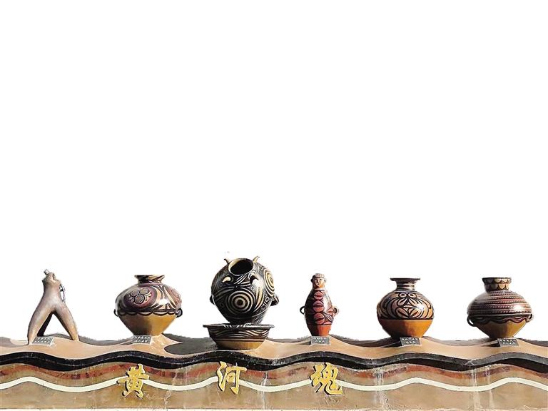 走進彩陶藝術館,目之所及都是造型獨特的仿彩陶罐,在墻上可以看到陶片裝飾的藝術品,細節透著“彩陶之鄉”的文化底蘊。