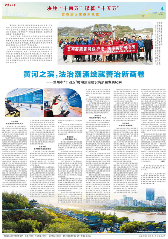 執法司法的公正高效,最終落腳于民生福祉的持續提升。蘭州市持續拓展法治實踐的廣度與深度,讓法治力量滲透至青少年成長、生態保護、企業發展和對外開放的各個領域,繪就一幅多元共治、充滿溫度的民生圖景。