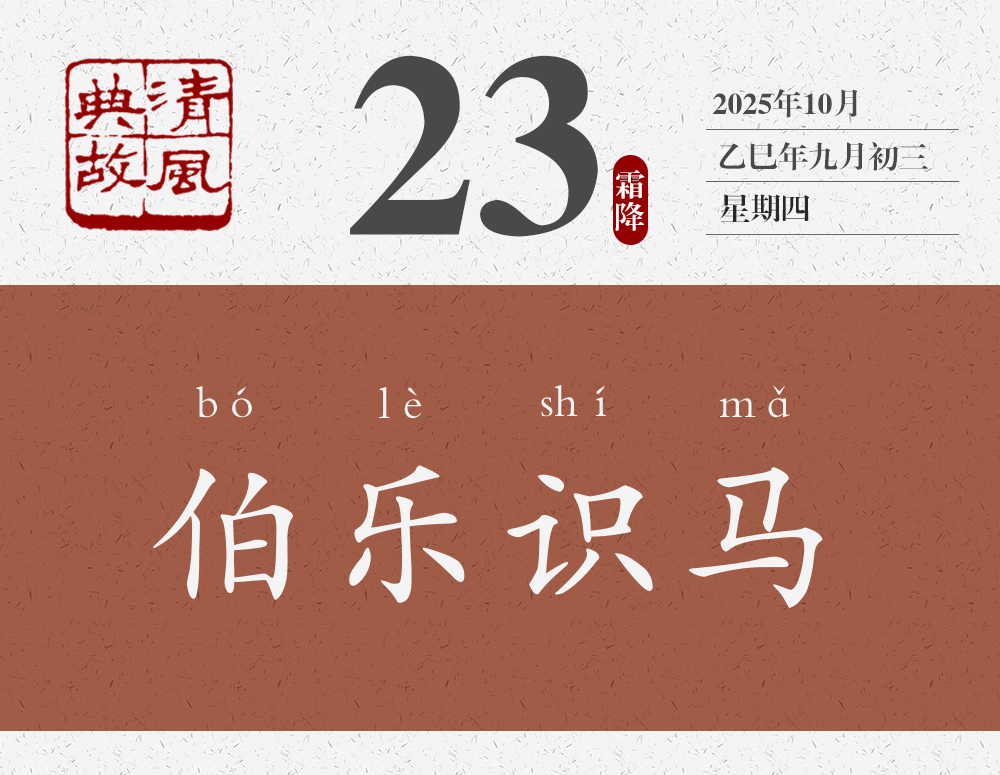 春秋秦穆公時,有一個著名的相馬師叫孫陽。因為神話傳說中,掌管天馬的神仙叫伯樂,人們為了表示對孫陽的敬佩,就稱他為伯樂。屈原《九章•懷沙》以及《莊子•馬蹄》《列子•說符》都曾經提到過伯樂。《戰國策•楚策四》里,春申君的舍人汗明,向春申君講了一個關于千里馬的故事:“夫驥之齒至矣,服鹽車而上太行。蹄申膝折,尾湛胕潰,漉汁灑地,白汗交流,中阪遷延,負轅不能上。伯樂遭之。下車攀而哭之,解纻衣以冪之。驥于是俛而噴,仰而鳴,聲達于天,若出金石聲者,何也?彼見伯樂之知己也。”