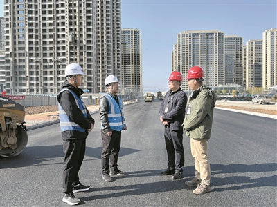 圖為近日,甘肅省蘭州市紀委監委駐市住建局紀檢監察組工作人員在七里河區崔家大灘片區T095-1#道路項目施工現場,了解項目進展情況。吳靜 攝