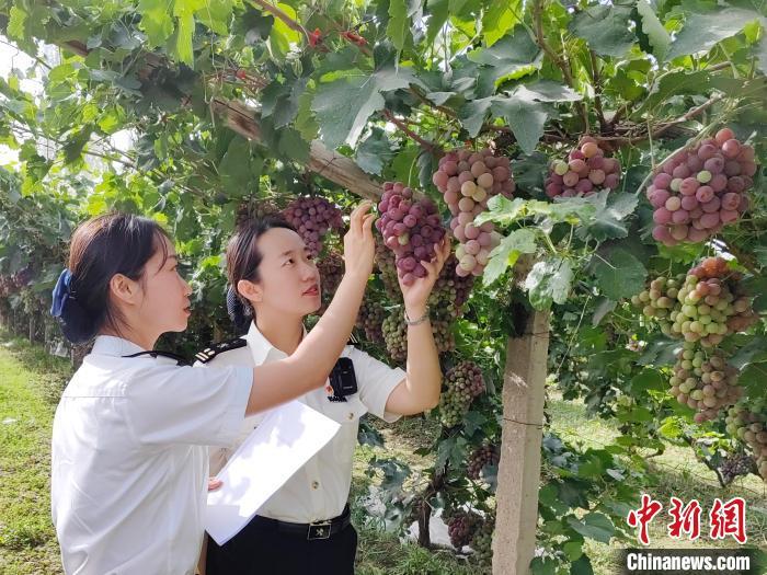 敦煌機場海關(guān)工作人員對敦煌葡萄進行源頭指導(dǎo)和管理。(資料圖)支婷婷 攝