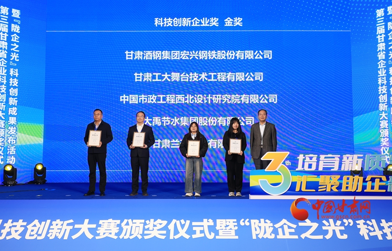 本屆大賽中,甘肅酒鋼集團宏興鋼鐵股份有限公司、中國市政工程西北設計研究院有限公司、大禹節水集團股份有限公司等企業摘得科技創新企業金獎。一批涉及高端裝備、新材料、新能源、生物醫藥、現代農業等領域的核心技術成果榮獲科技創新成果獎。國網甘肅省電力公司電力科學研究院趙金雄等來自企業研發一線的20位杰出科技工作者獲評“科技創新達人獎”,金昌市科學技術協會等6家單位獲優秀組織獎。