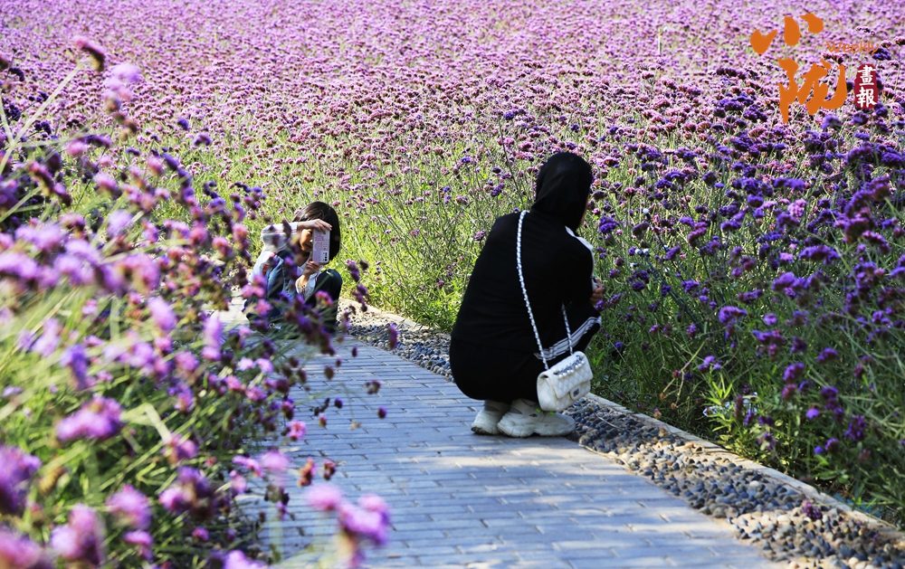 這個季節,各種花卉依舊開放,尤其是粉黛亂子草更是以草為名,比花還美,默默延續著黃河花堤從春到秋的浪漫氣息。