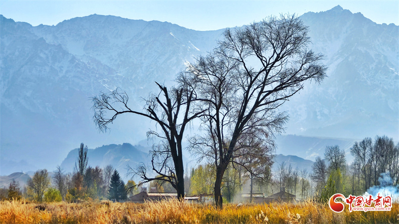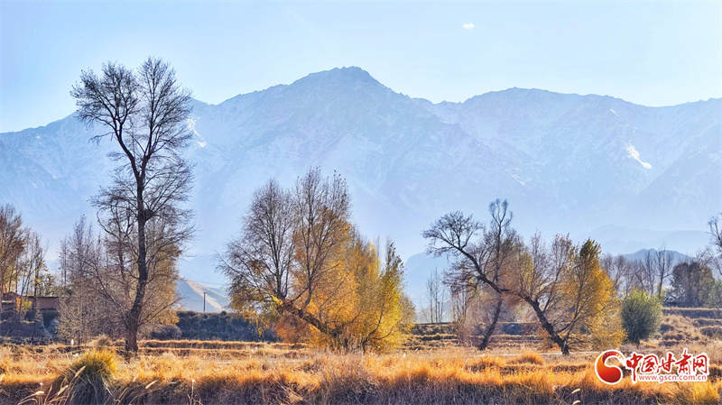 初冬時節,張掖市民樂縣南古鎮柳谷村景色宜人。巍峨的祁連山脈連綿起伏,山腳下,萬畝良田阡陌縱橫,黃綠相間的樹木點綴其間,為大地暈染出豐富的色彩層次,盡顯祁連山下冬日的獨特韻味。