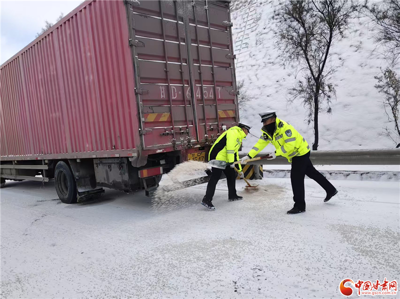 為應對降雪影響,蘭州公安交管部門科學調配警力,在城區主次干道、國省道沿線及重點積雪結冰路段布設執勤點位。針對解放門立交橋等橋梁隧道、長大下坡關鍵點位,提前預置融雪劑,聯合市政養護部門開展“機械除雪+人工清掃”作業,確保重點路段“見底露面”。
