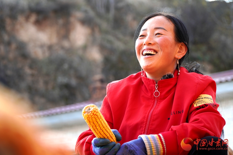 許改燕正在剝玉米。路世玲攝