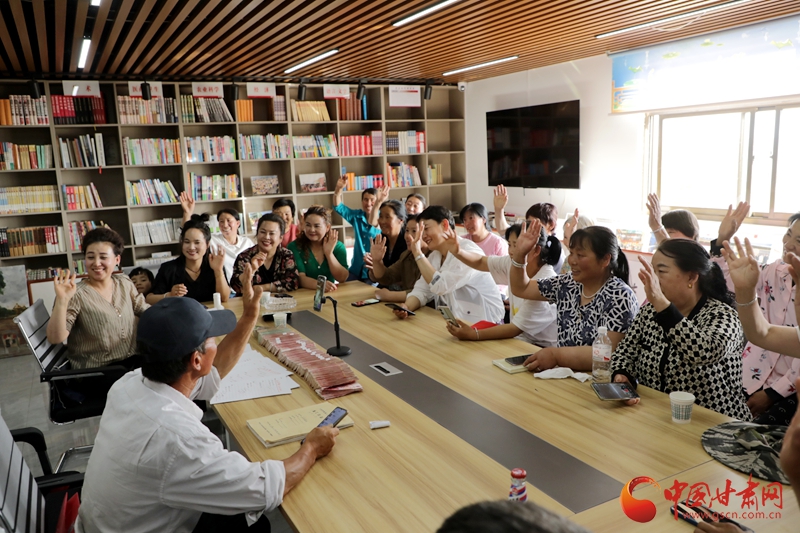 楊清艷牽頭成立的莊子峁生態(tài)農(nóng)莊為產(chǎn)業(yè)戶分紅。喬潔攝