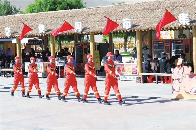 敦煌市消防救援大隊“九色鹿”女子服務隊在景區開展消防安全動態巡查。