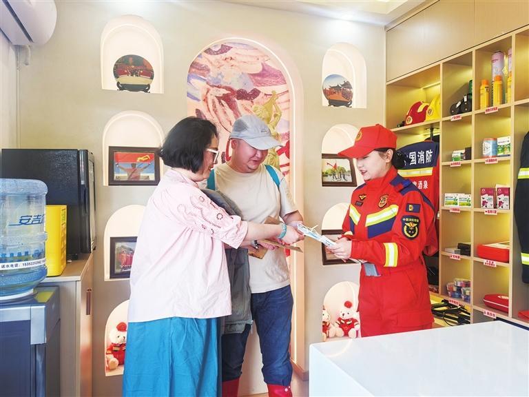 敦煌市消防救援大隊“九色鹿”女子服務隊在鳴沙山月牙泉景區開展消防安全宣傳活動。
